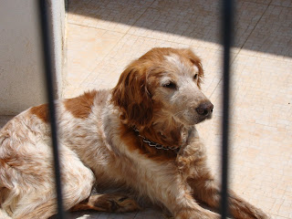 São dois epagnol breton, os grandes companheiros de caça do meu Pai. E o que vale ao nosso vizinho atrevido, é que os cães agora têm um canil, onde descansam à sombra, e cujo portão fechado os impede de atacar gatinhos indefesos!!!